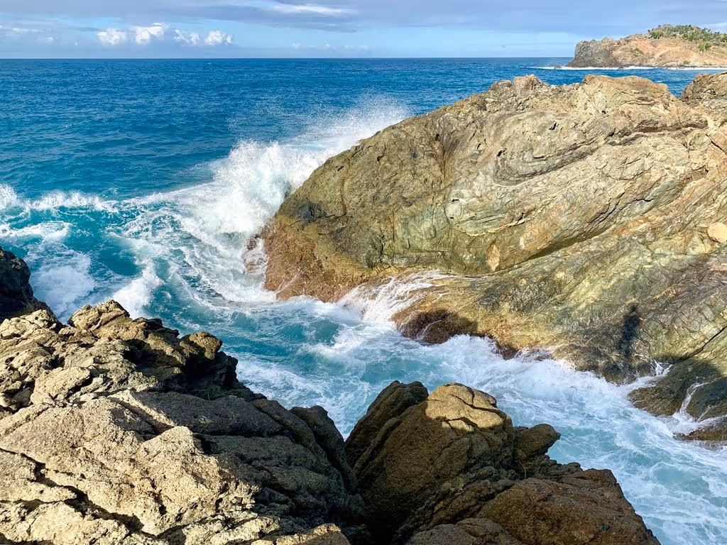 A natural rock pool where ocean waves create a bubbling, jacuzzi-like experience; one of the island’s most unique spots.